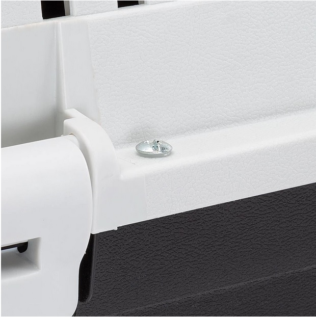 В комплекта са включени скоби, които могат да бъдат фиксирани към вратата на клетката, за да се гарантира по-голяма безопасност, и 8 винта, които могат да бъдат фиксирани към подходящите отвори на системите за странично затваряне.