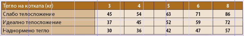 ИНСТРУКЦИИ ЗА УПОТРЕБА: Препоръчителният дневен хранителен прием (вижте таблицата) може да бъде разделен на 2 дневни хранения. Индивидуалните хранителни нужди могат да варират в зависимост от размера, възрастта и нивото на активност на животното. Трябва да има прясна и чиста вода на разположение по всяко време . Когато този продукт замества друг вид храна и/или диета, се препоръчва да се въведе постепенно за период от поне една седмица.