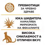 GEMON ADULT CAT (+12 МЕСЕЦА) С ПИЛЕ И ПУЕШКО е пълноценна храна за за котки в зряла възраст над 12 месеца. Формулата се характеризира с висококачествени съставки и източници на основни хранителни вещества, като пилешко и пуешко, и източник на въглехидрати, като ориз, сготвен и направен лесно смилаем благодарение на процеса на екструдиране. Идеална диета за възрастни котки с добавени пребиотици фрукто-олигозахариди (FOS) и мано-олигозахариди (MOS) за поддържане на здравето на червата, и с юка шидигера за ограничаване миризмата на фекалиите. Рецептата съдържа прясно месо за оптимален вкус и масло от сьомга, за да запази козината лъскава и мека. Без добавени изкуствени оцветители и консерванти.