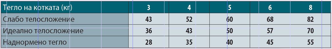 ИНСТРУКЦИИ ЗА УПОТРЕБА: Препоръчително е да се потърси съвет от ветеринарен лекар преди употреба и преди удължаване на периода на употреба. Препоръчителна продължителност на употреба: първоначално до 6 месеца. Препоръчителният дневен прием на храната (вижте таблицата) може да бъде разделен на 2 дневни хранения. Индивидуалните хранителни нужди могат да варират в зависимост от размера, възрастта и условията на живот на животното. Трябва да има прясна и чиста вода на разположение по всяко време. Когато този продукт замества друг вид храна и/или диета, се препоръчва да се въведе постепенно за период от поне 1 седмица.