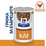 Hill’s PRESCRIPTION DIET k/d Kidney Care Stew- лечебна мокра храна за кучета с бъбречна недостатъчност, консерва задушено пилешко със зеленчуци