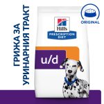 Hill’s Prescription Diet u/d – лечебна суха храна за кучета с уринарни проблеми, цистеинови и пуринови уролити