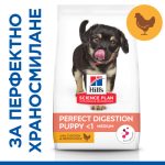 Hill’s Science Plan Puppy Perfect Digestion Medium – пълноценна суха храна за отлично храносмилане за кученца до 1 година от средни породи, с пилешко и кафяв ориз