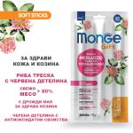 Monge Gift Cat Soft Sticks Skin Support – лакомство за котки за кожа и козина, с риба треска и детелина, без зърнени култури