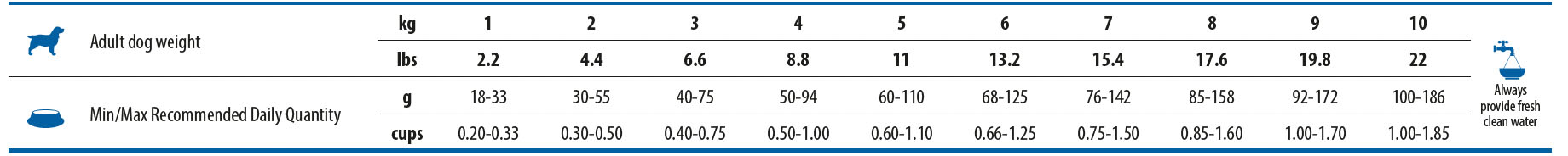 Състав: Херинга (24%), дехидратиран протеин от херинга (23%), сладък картоф, рибено масло (от херинга), сушена спирулина (5%), ленено семе , сушено годжи бери (2.5%), влакнини от грах, сушен морков, брашно от люцерна, инулин, фрукто-олигозахариди, екстракт от мая (източник на мано-олиго-захариди), сушен спанак, семена и люспи от псилиум, натриев хлорид, сушена бирена мая, куркума, екстракт от алое вера, глюкозамин, хондроитин сулфат.