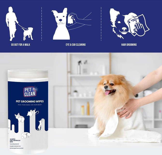 Грумингът е съществена част от грижата за домашните любимци и Pet Clean Grooming Wipes могат да бъдат ценен инструмент между редовните сесии в салона. Използвайте кърпичките за домашни любимци, за да почистите нежно козината, лапите и лицето на вашия домашен любимец, за да премахнете мръсотията, пърхота и миризмата. Редовното почистване помага на домашния любимец да се чувства по-комфортно, чист и свеж.