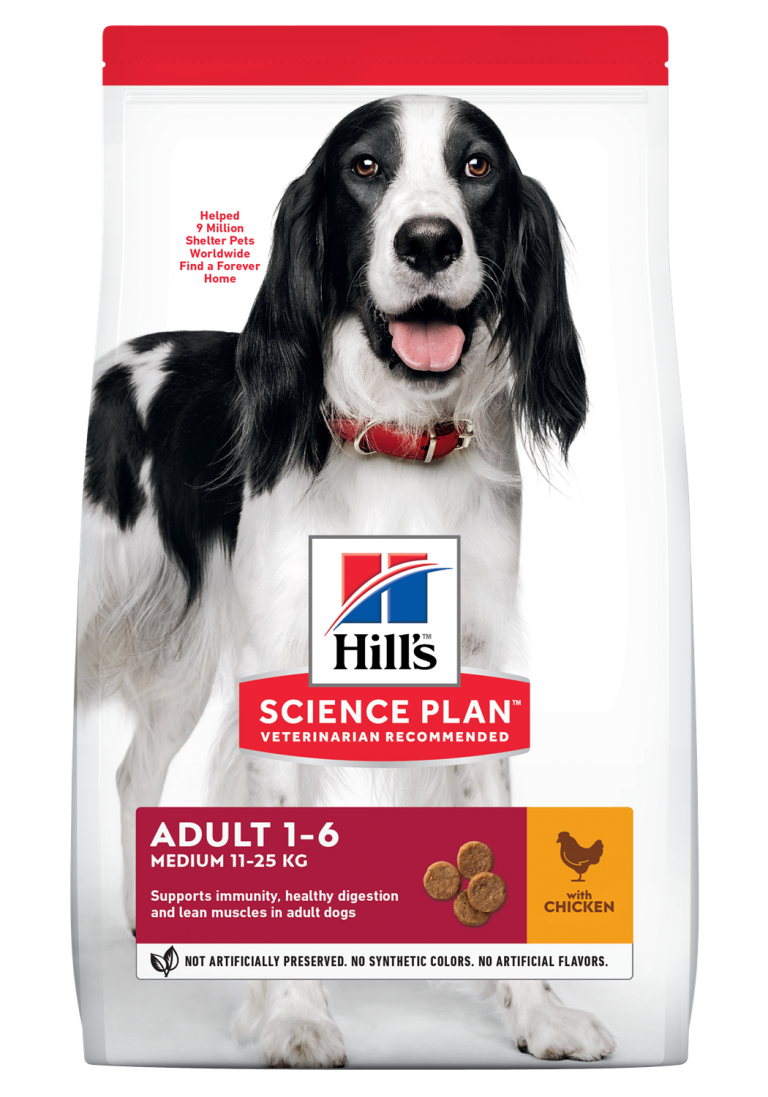 Hill’s Science Plan Medium Adult с пилешко – Пълноценна храна за кучета от средни породи 10-25 кг, с умерени енергийни нужди, 1 – 6 г.