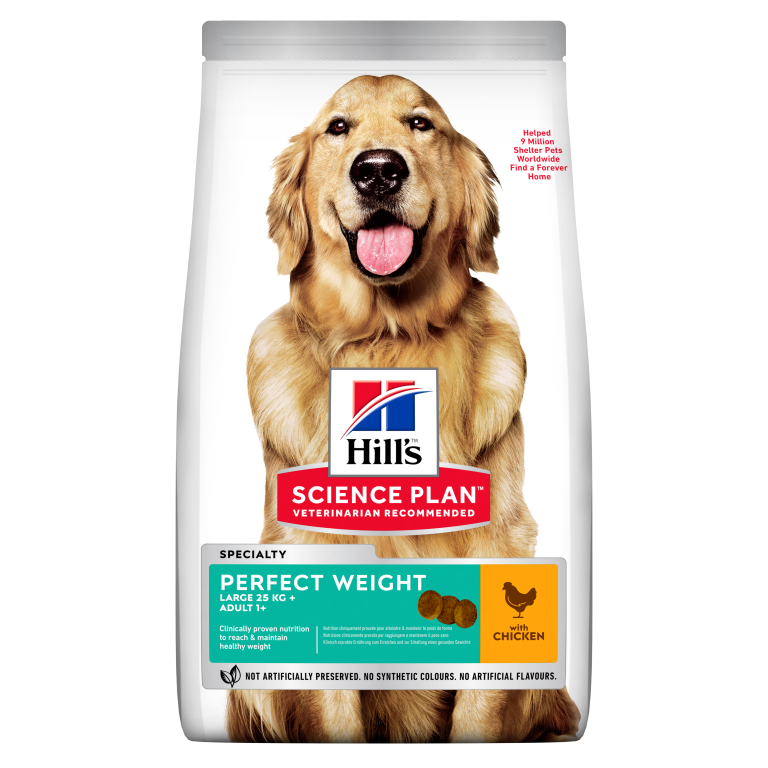 HILL’S SCIENCE PLAN Perfect Weight Large Breed Adult Chicken – пълноценна суха храна за намаляване и поддържане на теглото при кучета от едри породи (над 25 кг) над 1 година