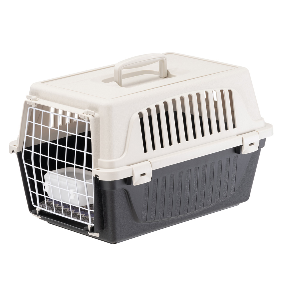 Транспортната клетка Atlas идва при вас с включени аксесоари – възглавница и пластмасова купа за вода или храна. Предлага се в три размера, подходящи както за кучета, така и за котки.