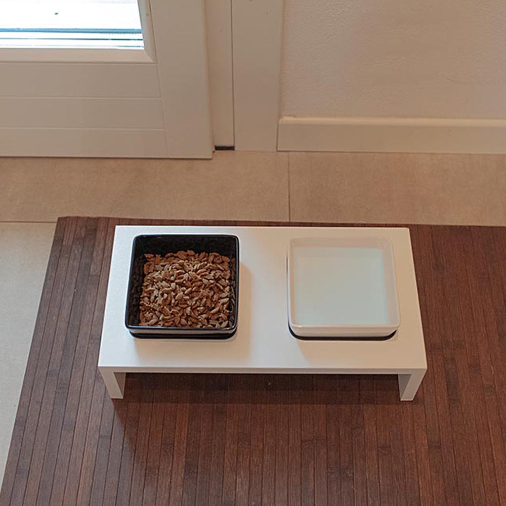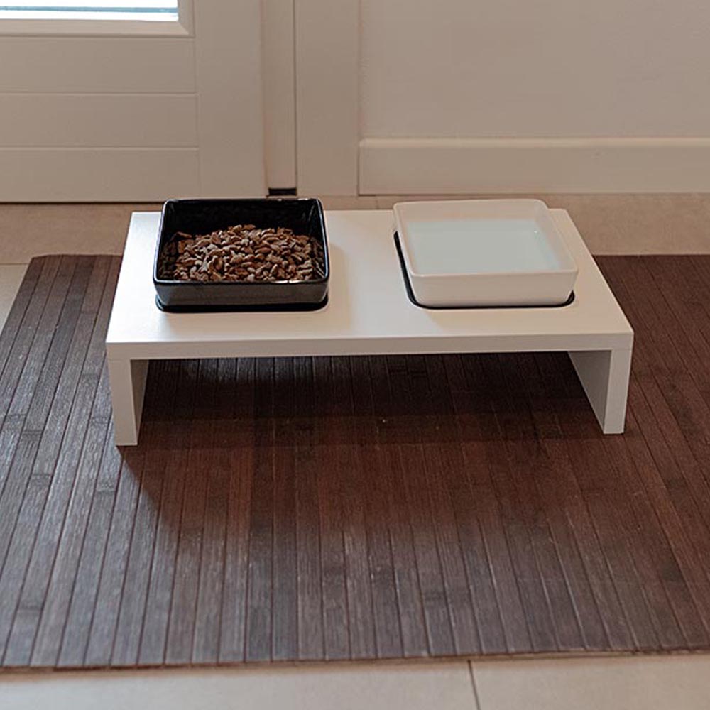 Maki се състои от елегантна дървена поставка и две керамични купи, в японски стил! Купите се изваждат лесно от основата за почистване. Дървената поставка е повдигната от пода и има гумени подложки против плъзгане, за да се осигури максимална стабилност, като същевременно може да се повдига и премества лесно.