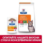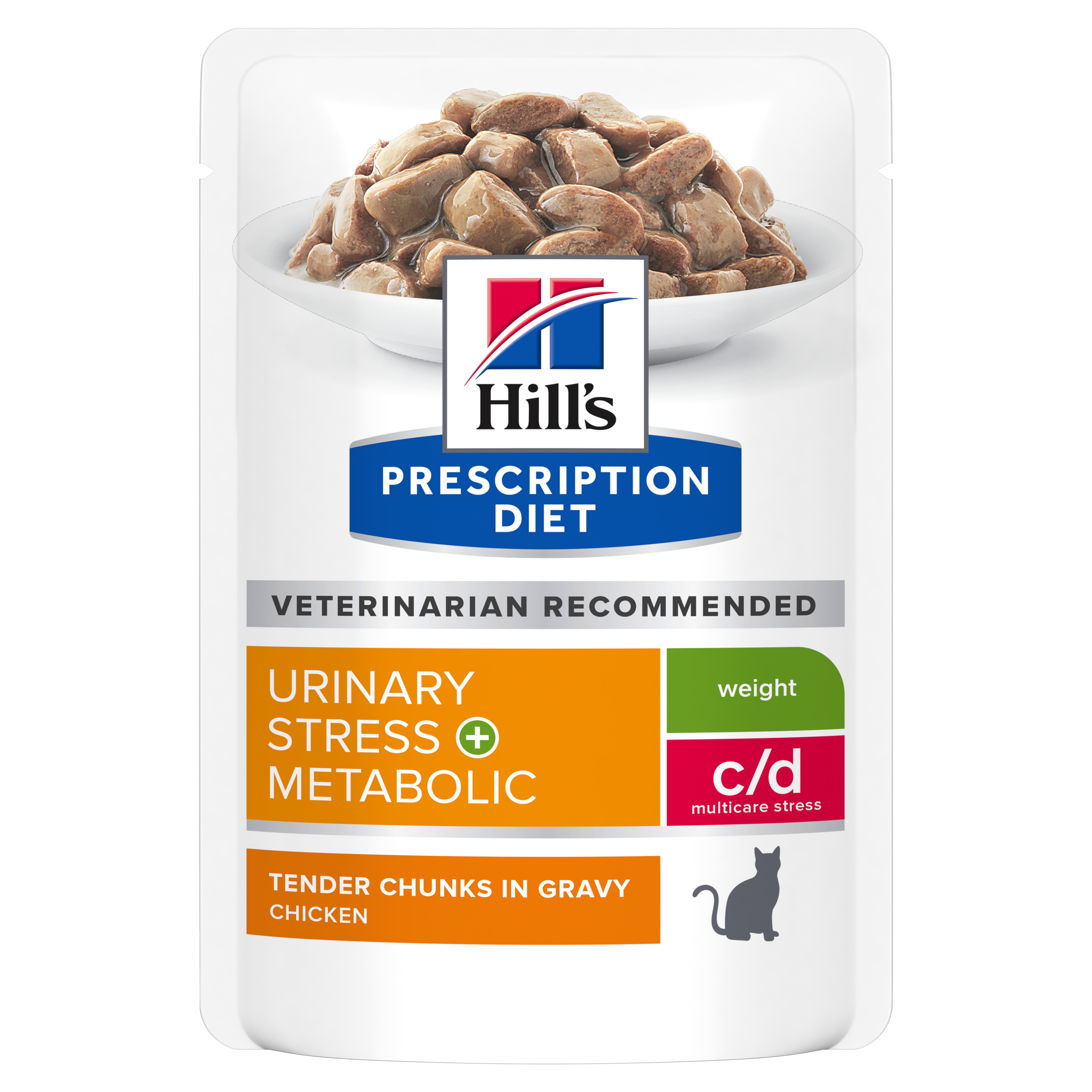 Паучът за котки Hill’s PRESCRIPTION DIET c/d Urinary Stress + Metabolic с пилешко е специално формулиран от хранителните експерти и ветеринарните лекари на Hill’s за поддържане на пикочната система и теглото.