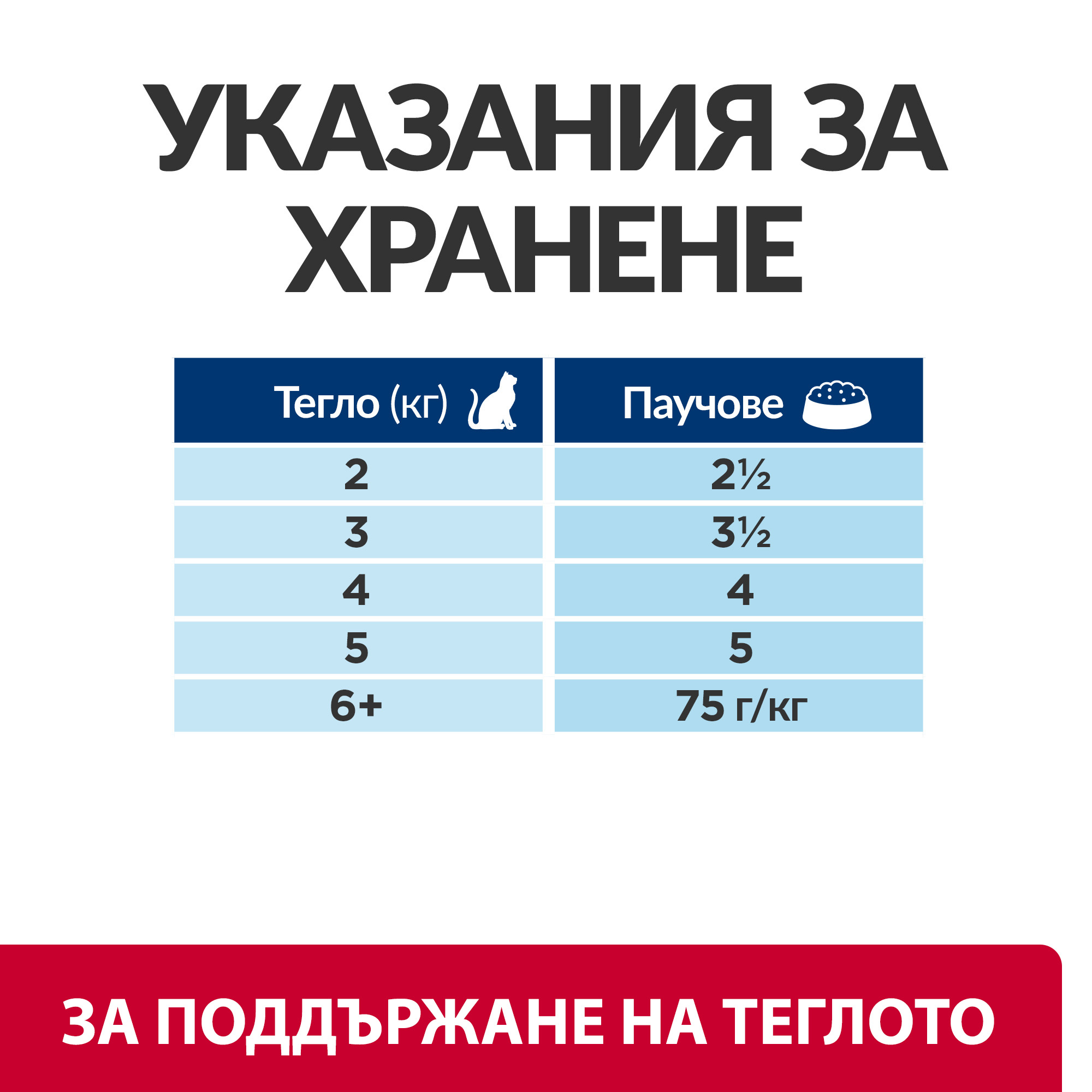Идеално тегло на котката – кгКоличество на ден – 85 г паучКоличество на ден – г