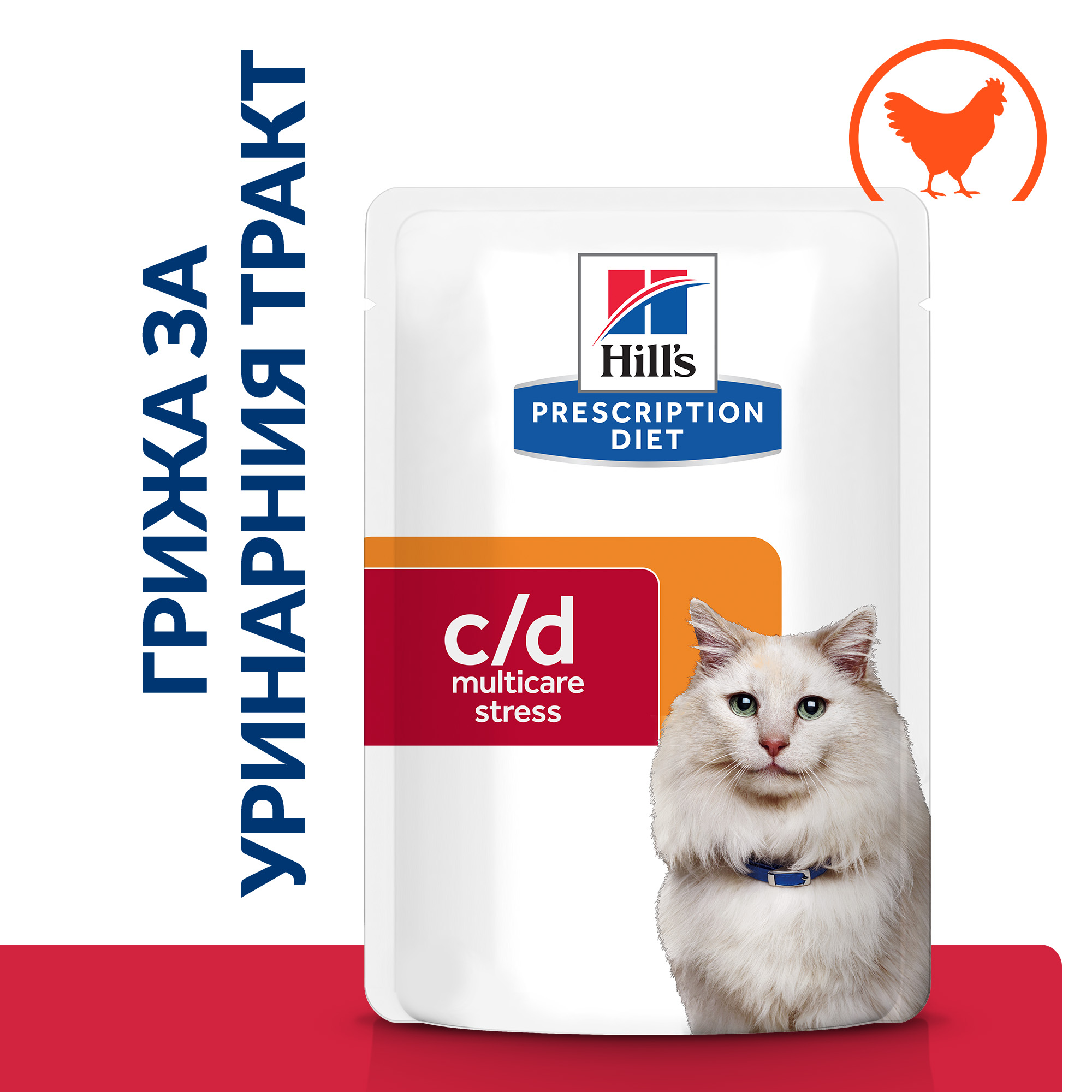 Hill’s PRESCRIPTION DIET c/d Urinary Stress Chicken Pouch – лечебна мокра храна за котки с уринарни проблеми, идиопатичен цистит – пауч с пилешко