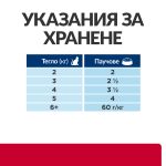 Давайте само препоръчаната храна PRESCRIPTION DIET. Преди употреба поискайте от ветеринарния лекар да ви даде конкретни указания за храненето на вашия домашен любимец. Вижте указанията за хранене на опаковката. Дневните препоръчителни дажби са само ориентировъчни. При съмнение се консултирайте с ветеринарен лекар. Винаги оставяйте прясна вода за пиене.