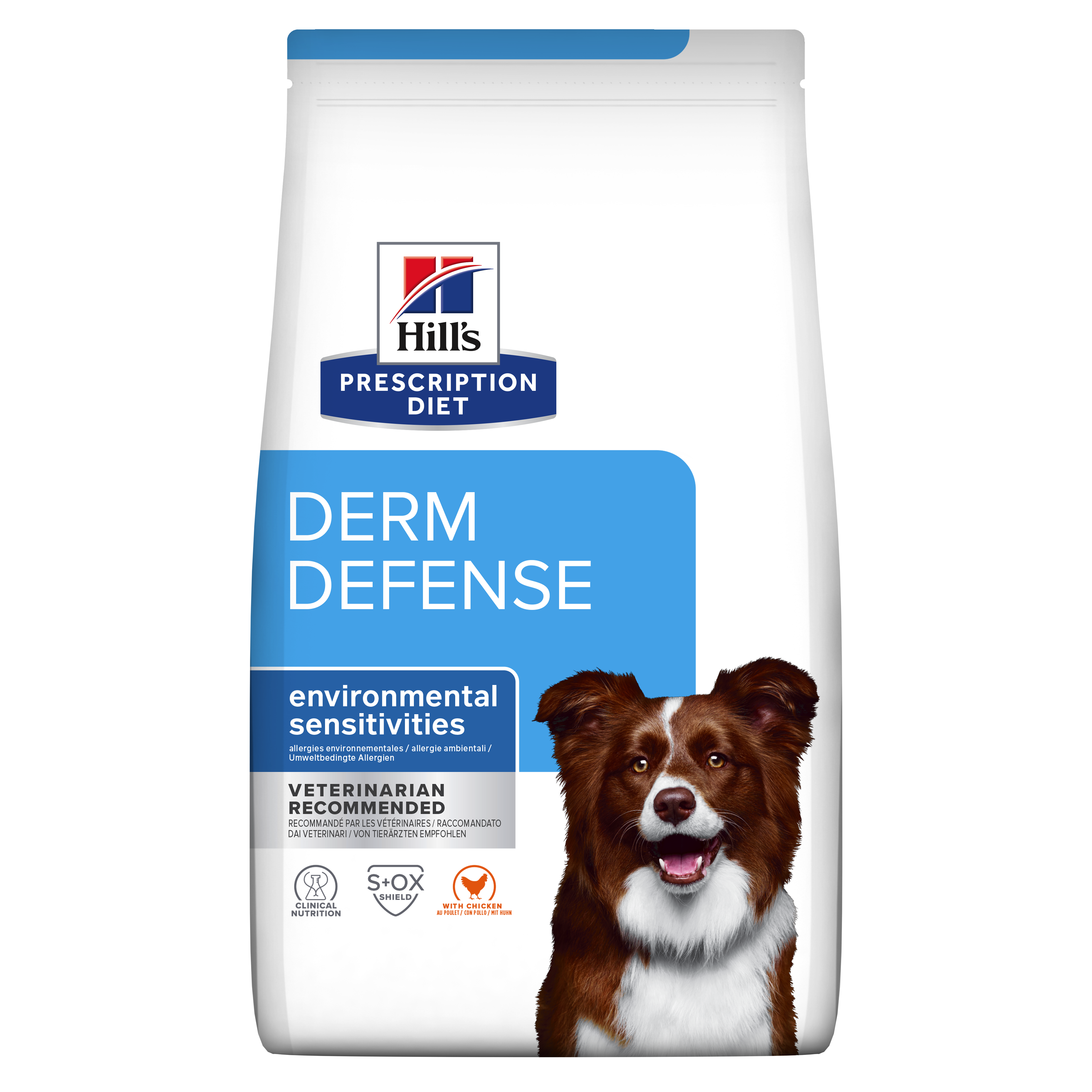 Храната за кучета Hill’s PRESCRIPTION DIET Derm Defense е специално формулирана от хранителните експерти и ветеринарните лекари на Hill’s за овладяване на чувствителността на кучетата към алергените в околната среда. Тя съдържа високи нива омега-3 и омега-6 мастни киселини за защита на кожата и организма от алергените на околната среда. Тази суха храна за чувствителна кожа се приготвя с пилешко и има неустоим вкус, който кучето ви ще обикне.