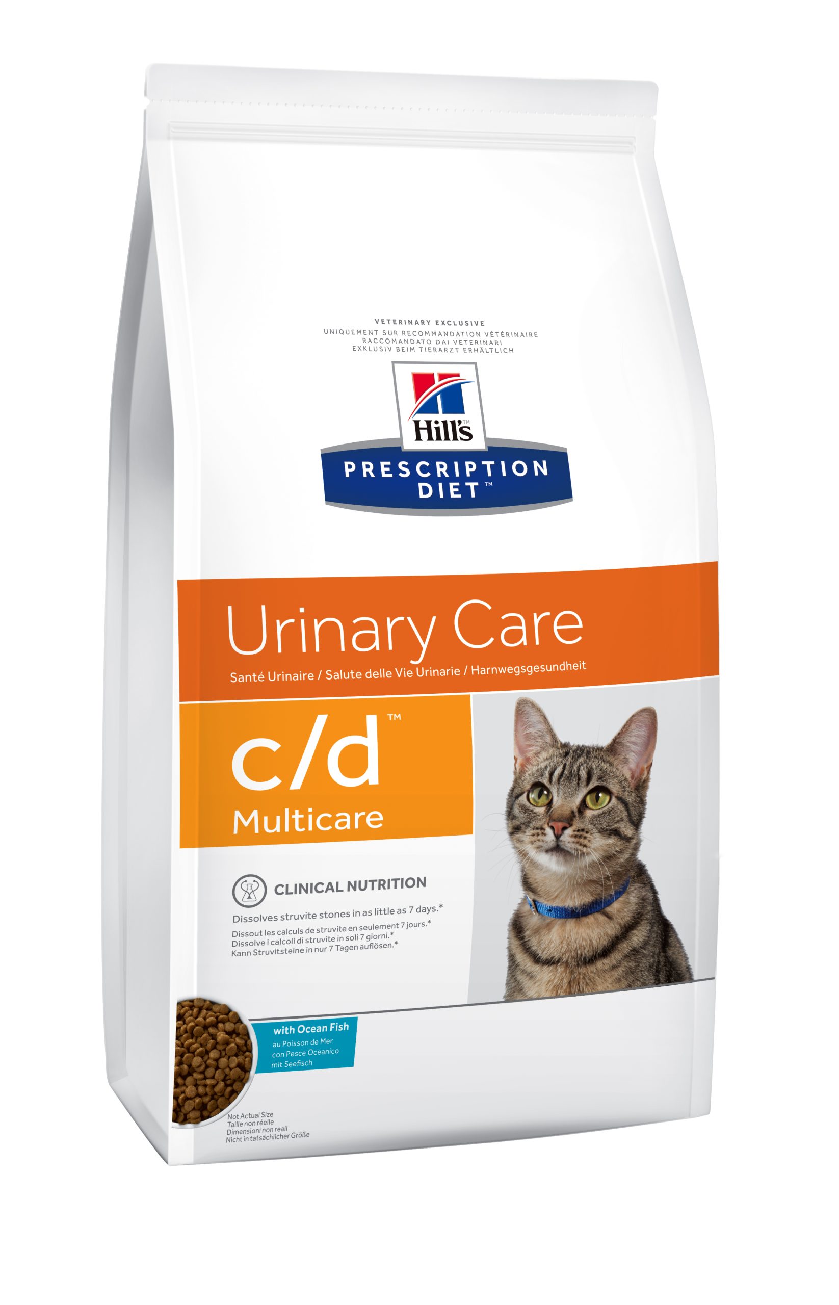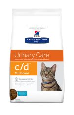 Prescription Diet™ c/d™ Multicare Feline with Ocean Fish е пълноценна суха диетична храна, спомагаща за разтваряне на струвитни, калциево-фосфатни и калциево-оксалатни уролити при котки. С киселинообразуващо действие върху урината и ниско съдържание на магнезий.