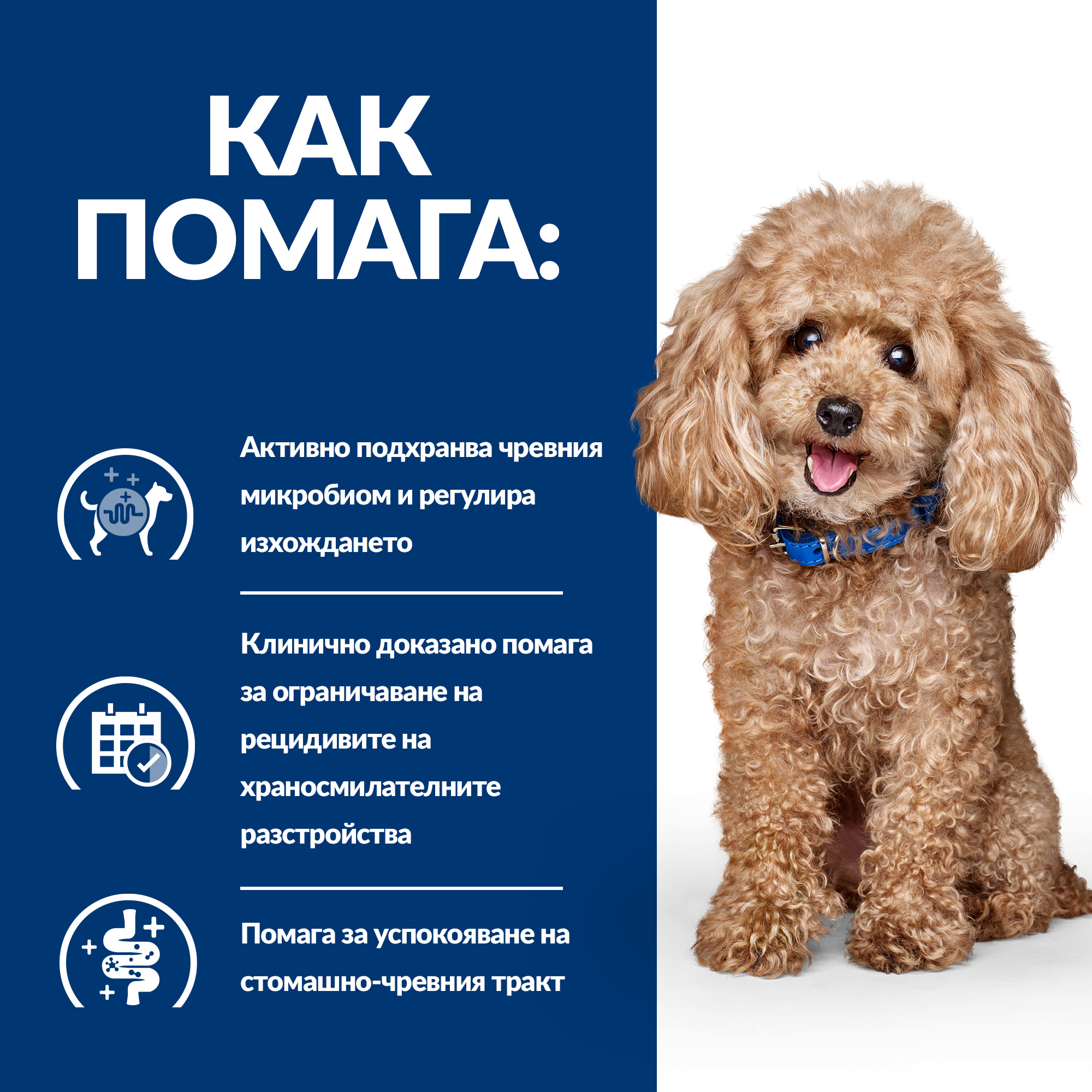 Важно е да продължите да храните кучето си с PRESCRIPTION DIET Gastrointestinal Biome Mini и след подобряване на симптомите, за поддържане на добро храносмилателно здраве. Вашият ветеринарен лекар ще Ви разкаже повече за това как храните PRESCRIPTION DIET могат да допринесат за един щастлив и активен живот.