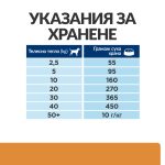 Давайте само препоръчаната храна PRESCRIPTION DIET. Преди употреба поискайте от ветеринарния лекар да ви даде конкретни указания за храненето на вашия домашен любимец. Вижте указанията за хранене на опаковката. Дневните препоръчителни дажби са само ориентировъчни. При съмнение се консултирайте с ветеринарен лекар. Винаги оставяйте прясна вода за пиене.