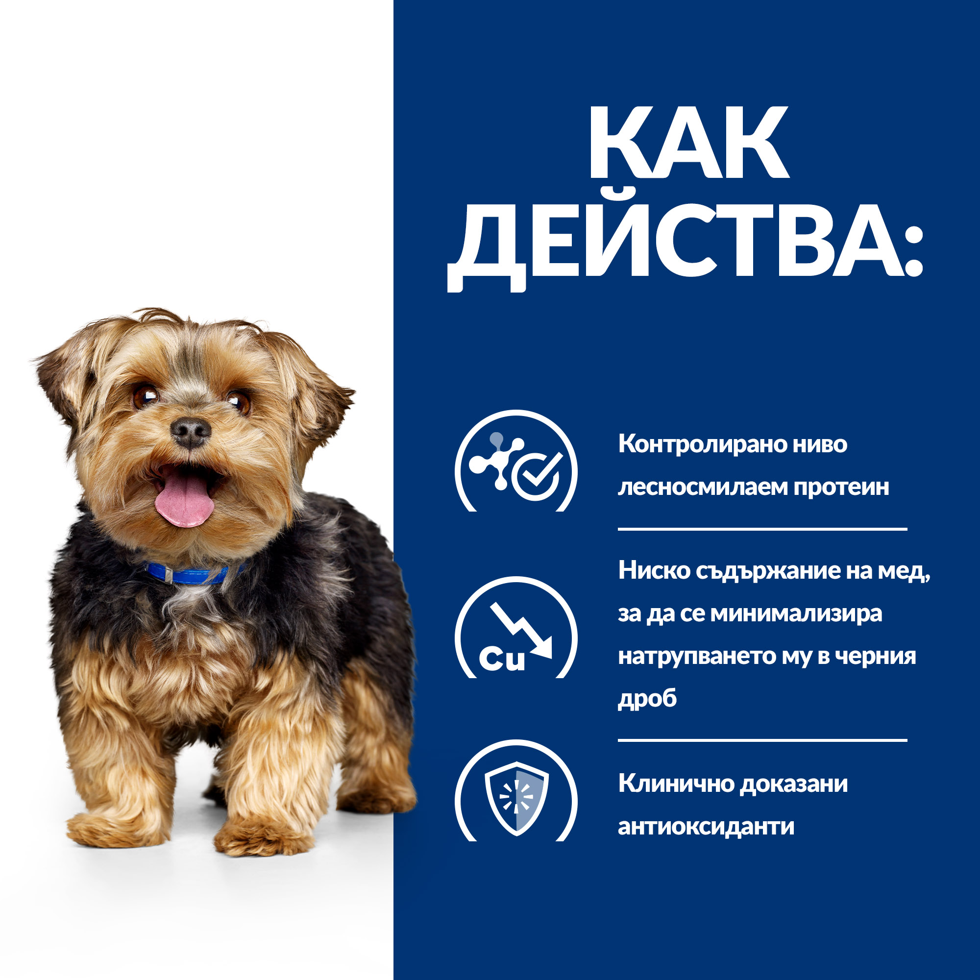 • Ниско съдържание на мед, за да се минимализира натрупването му в черния дроб