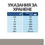 Давайте само препоръчаната храна PRESCRIPTION DIET. Преди употреба поискайте от ветеринарния лекар да ви даде конкретни указания за храненето на вашия домашен любимец. Вижте указанията за хранене на опаковката. Дневните препоръчителни дажби са само ориентировъчни. При съмнение се консултирайте с ветеринарен лекар. Винаги оставяйте прясна вода за пиене.