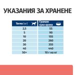 Поискайте от ветеринарния лекар да ви даде конкретни указания за храненето на вашия домашен любимец. Това са само общи насоки. Грамовете са най-точната форма на измерване. Ако използвате мерителна чашка на Hill’s, вижте cup.hillspet.com.
