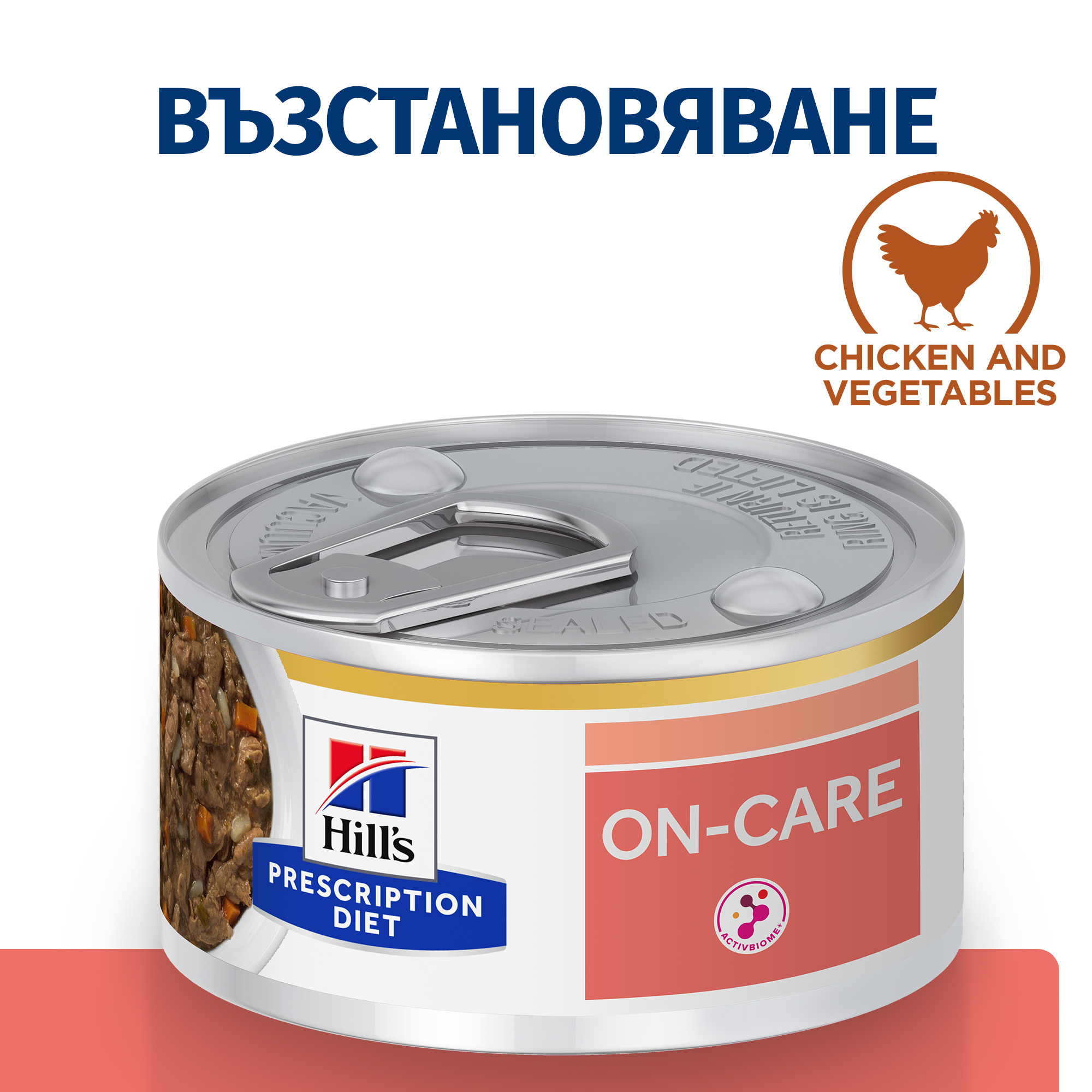 Новата диета Prescription Diet ON-Care задушено с пилешко и добавени зеленчуци е формулирана да насърчи приема на храна при домашни любимци, живеещи с критично заболяване – давайки на ветеринарните лекари и стопаните начин да подкрепят борбата с всяко хранене.