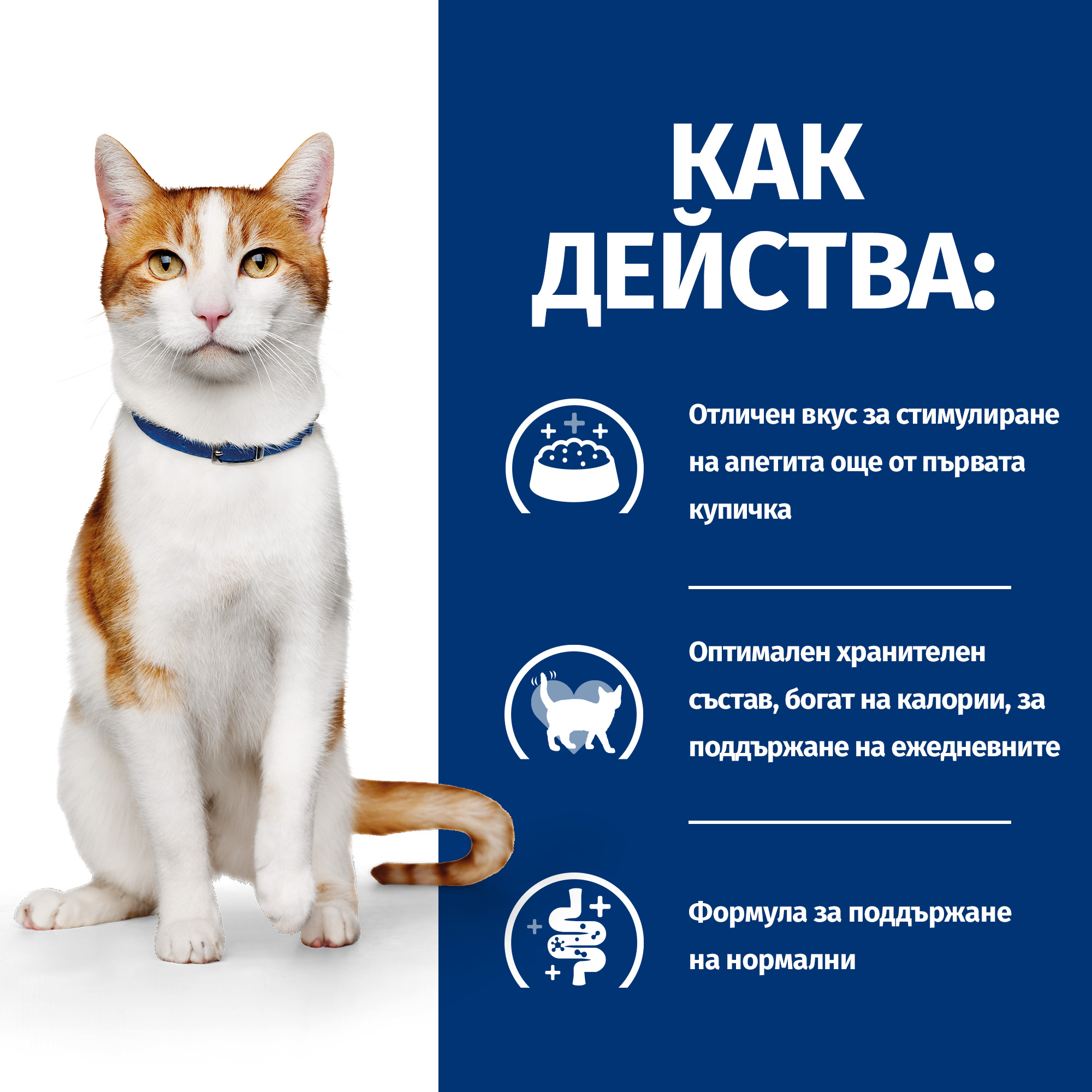 Когато котката страда от тежко заболяване, правилното хранене е от ключово значение. Hill’s Prescription Diet ON-Care е премиум храна за котки, която помага за поддържане на силата и енергията, а отличният вкус насърчава храненето още от първата купичка – защото всеки миг, който прекарвате с котката си, е от значение.