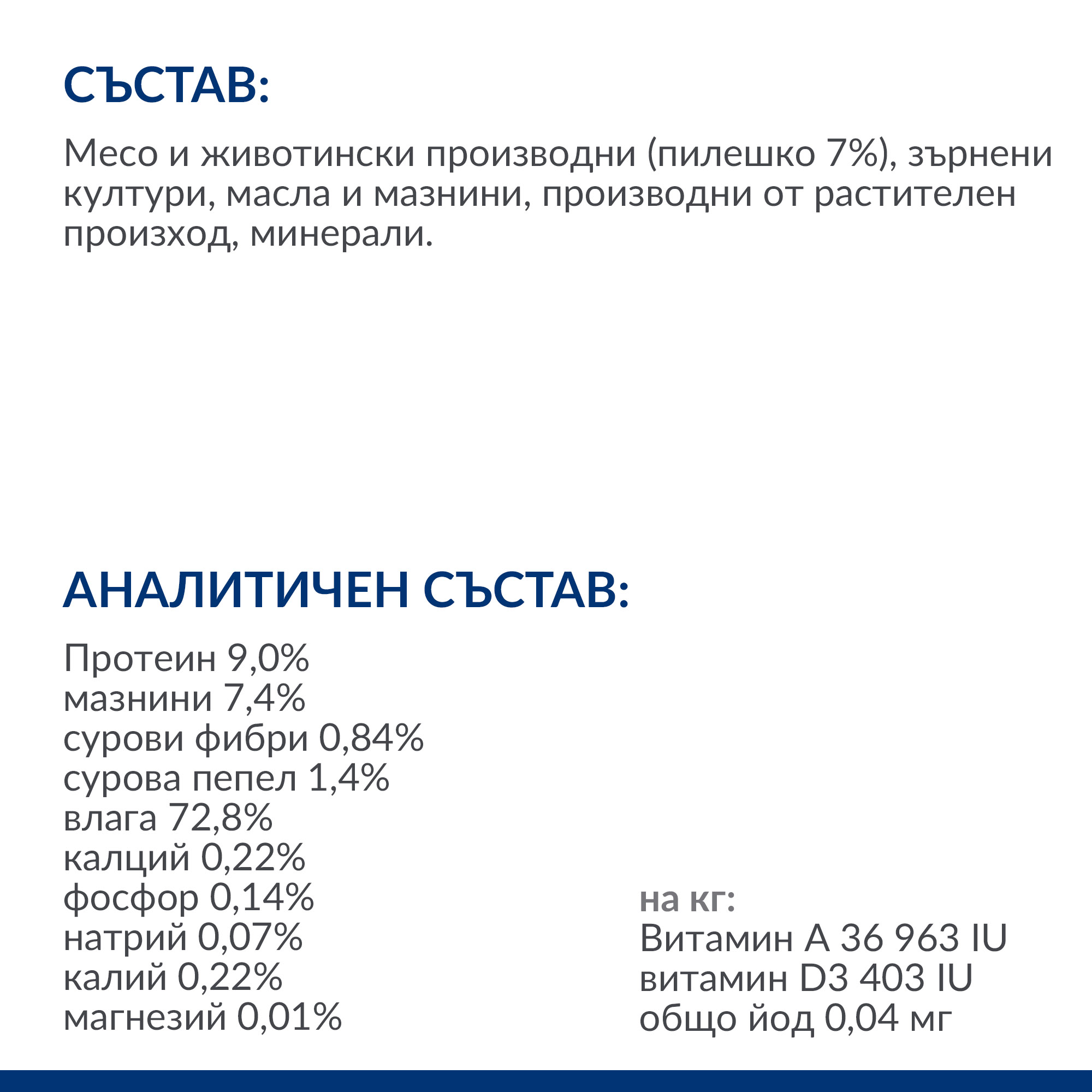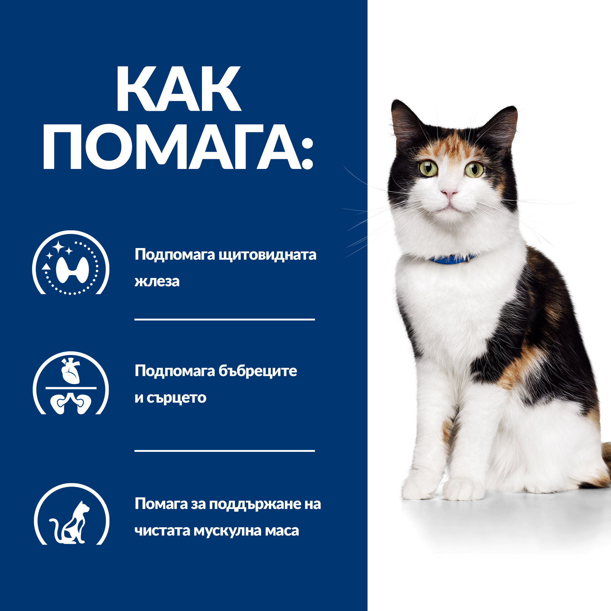 Мократа храна за котки Hill’s PRESCRIPTION DIET y/d Thyroid Care е специално формулирана от хранителните експерти и ветеринарните лекари на Hill’s за поддържане на щитовидната жлеза