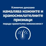 Храната за кучета Hill’s PRESCRIPTION DIET z/d Food Sensitivities AB+ клинично доказано намалява кожните и храносмилателните симптоми, причинени от хранителна непоносимост. Включва технологията ActivBiome+ на Hill’s – уникален и революционен микс от пребиотици, който бързо подхранва чревния микробиом и така поддържа храносмилането и общото благосъстояние. Тази храна има неустоим вкус, който кучето ви ще обикне.