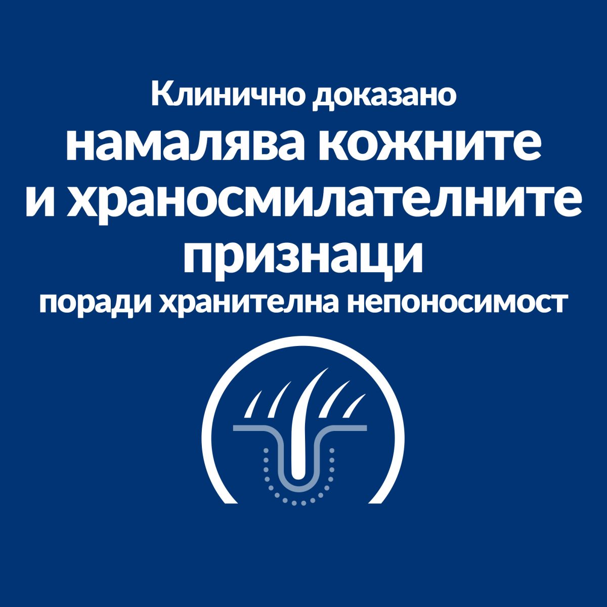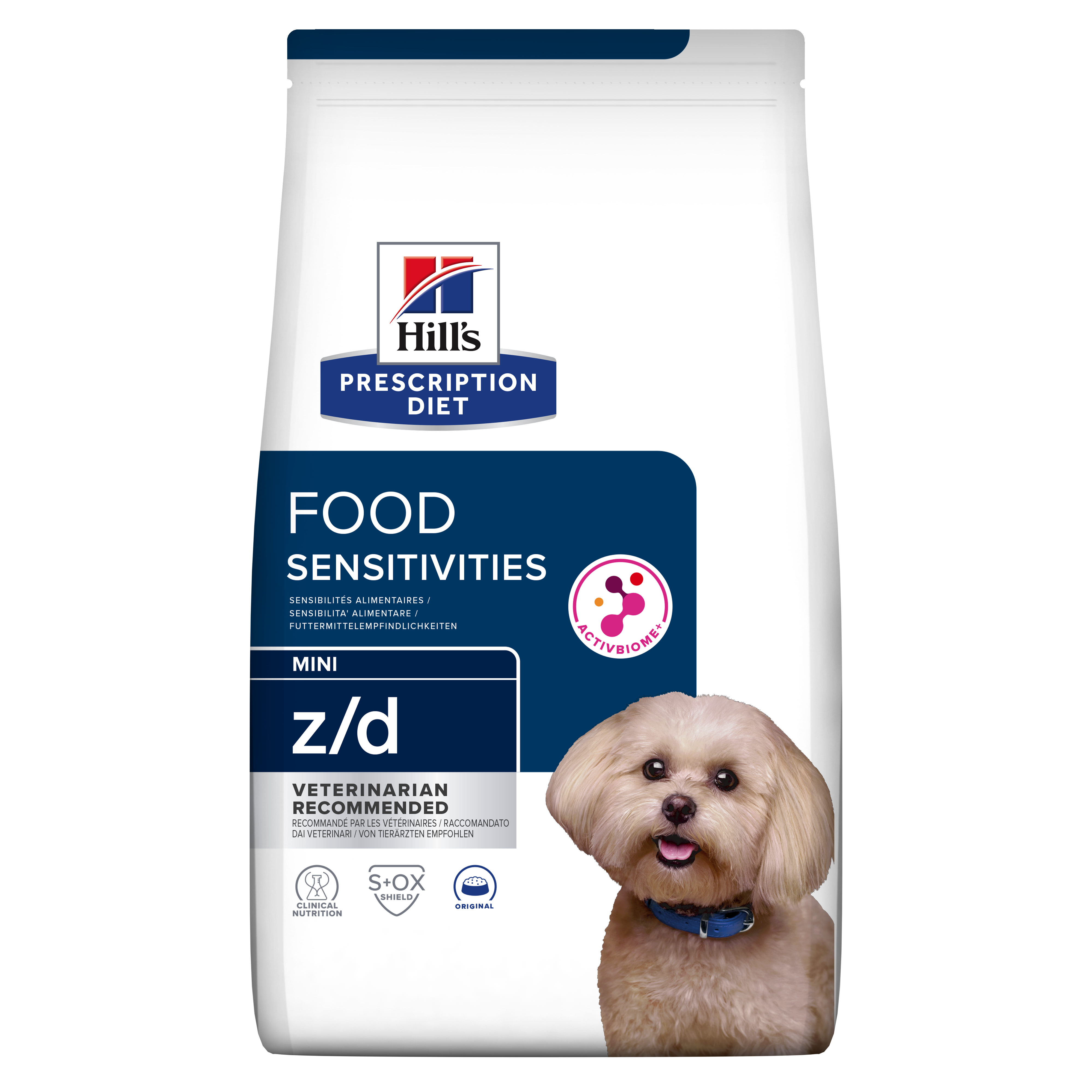 Hill’s PRESCRIPTION DIET z/d Mini е суха, лечебна храна за кучета с пилешко е специално формулирана от диетолозите и ветеринарните лекари на Hill’s, за поддържане на състоянието на кучета, които проявяват чувствителност и непоносимост към храни и имат предпочитание към по-малък размер на гранулата.