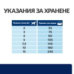 Давайте само препоръчаната храна PRESCRIPTION DIET. Преди употреба поискайте от ветеринарния лекар да Ви даде конкретни указания за храненето на вашия домашен любимец. Вижте указанията за хранене на опаковката. Дневните препоръчителни дажби са само ориентировъчни. При съмнение се консултирайте с ветеринарен лекар. Винаги оставяйте прясна вода за пиене.