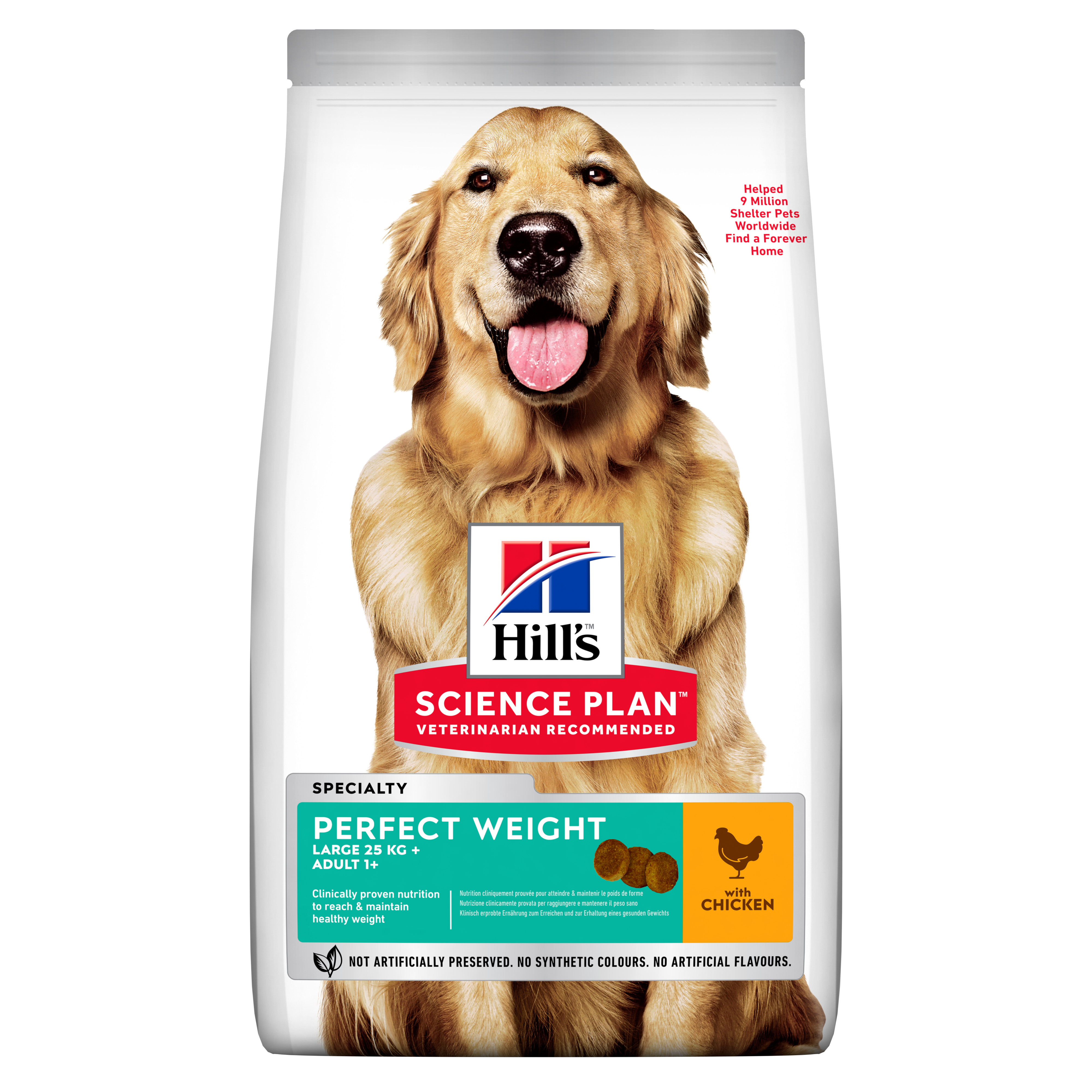 HILL’S SCIENCE PLAN Perfect Weight Large Breed Adult Chicken – пълноценна суха храна за намаляване и поддържане на теглото при кучета от едри породи (над 25 кг) над 1 година