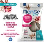 Monge Gift Dog Dental Sticks Puppy&Junior Medium-Maxi – екструдирани дентални стикове за подрастващи кученца от средните и едри породи със свинско и дяволски нокът, монопротеинови.
