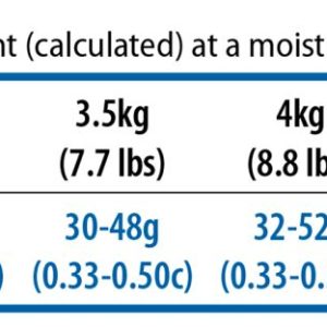 Добавки: Хранителни добавки/кг: витаним А (ретинил ацетат): 5000IU, витамин D3: 500IU, витамин Е (ал-рак-алфа-токоферил-ацетат): 50мг, таурин: 1000мг.