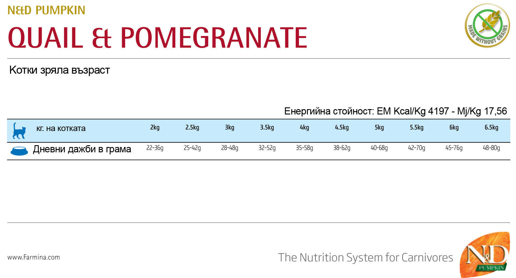 Енергийна стойност: EM Kcal/Kg 4197 – Mj/Kg 17,56