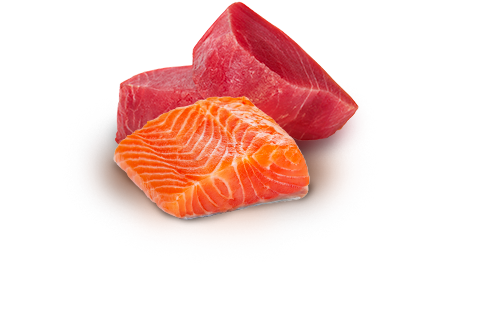 Състав: жълтопера риба тон (50%), филе от сьомга (20%), рибен бульон.