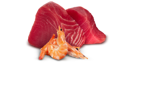Състав: жълтопера риба тон (65%), цели скариди (5%), рибен бульон.