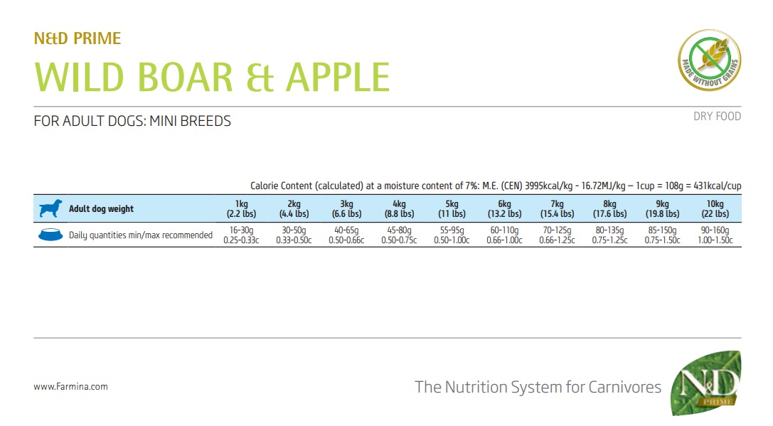 N&D Prime Wild Boar & Apple Adult Mini – суха храна без зърнени култури за кучета в зряла възраст от дребни породи, с глиган и ябълка
