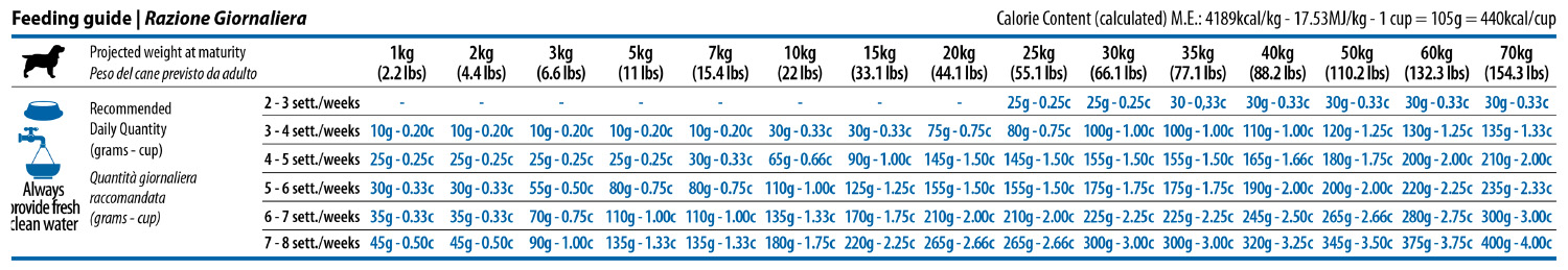 • С пилешко – източник на протеин с висока биологична стойност, допринасящ степента на усвояването на продукта да бъде 95%. В храните ни влагаме месо от свободно отглеждани италиански пилета