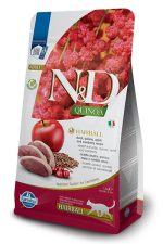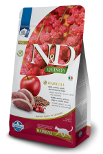 N&D Quinoa Hairball with Duck & Cranberry , Cat Adult – суха храна без зърнени култури против космени топки, за котки над 1 година, с патешко, киноа, ябълка и червени боровинки